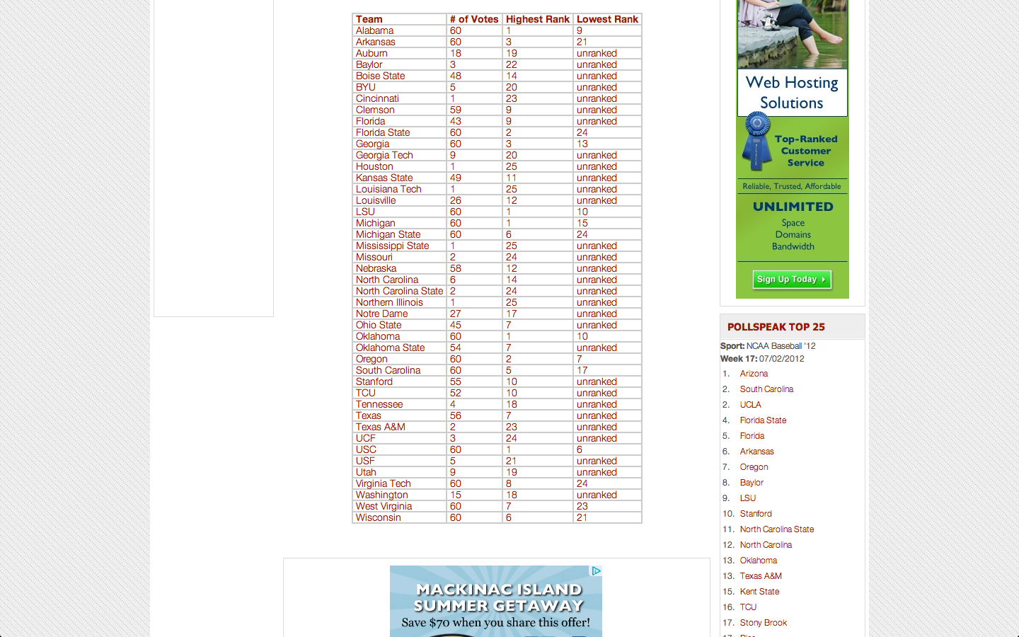 Here’s the top 25 for both polls for those of you that haven’t seen it.