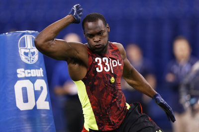 INDIANAPOLIS, IN – FEBRUARY 25: Barkevious Mingo of LSU works out during the 2013 NFL Combine at Lucas Oil Stadium on February 25, 2013 in Indianapolis, Indiana. (Photo by Joe Robbins/Getty Images)
