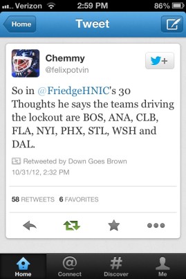 Now, I’m not going to defend either side, because the side I’m on is the fans side. The fans were left out in the cold, forced to watch as the game they love was just tossed aside. The NHL was coming off a record profit and decided that they needed more. Coincidentally, they decided they had to lock the players out and hurt the game in order to gain that. USA Today has a nice “Winners and Losers of the lockout” piece that is worth a read, and I agree with a lot of it.