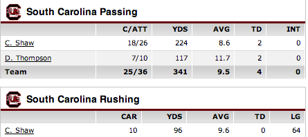 Also, Sanders having 9 receptions for 92 yards and 2 TDs to go with his punt return? I know they said Clowney was the player of the game, but it was clearly Ace. He played fantastic, and so did both of their quarterbacks. Connor Shaw and Dylan Thompson were completely effective, and pretty much had their way with the Michigan defense all game.