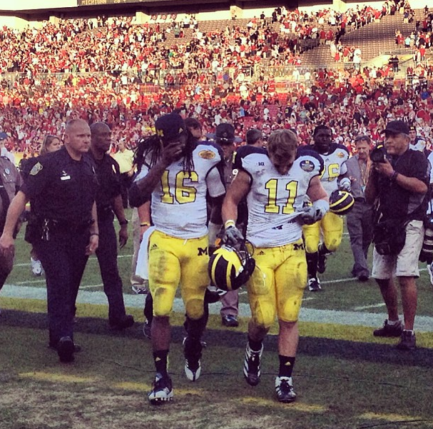 Denard Robinson at runningback reminded me of Chris Johnson, and no it wasn’t the dreads, they have similar running styles. They’re incredibly fast, will make you miss and can take hits. Say what you want about Chris Johnson and his dropping production in the NFL, but the dude is durable. While Denard hasn’t been very durable throughout his career, he definitely passed the test in the Outback Bowl. 23 carries for 100 yards against an SEC defense that utterly pounded him? I’ll take it. He showed serious grit and further showed that he will literally do anything to get on the field and help the team. A quality that I wish more Detroit Lions had…looking at you Titus Young. His one pass was a complete wounded duck and he showed that his elbow is still not 100%. He was never a perfect passer, but he always had a rocket arm. It looks like that skill has not fully returned and it may never. This game, much like his game against Iowa was a game that they used to give the NFL something to look at on film. Everyone knows that he will show up to the combine and be an absolute workout warrior. It’s really too bad we couldn’t send him out with a win, all of the Seniors that stuck around absolutely deserved it.
