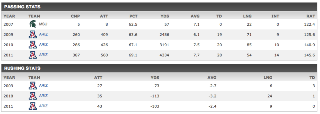 As you can see, Foles is an accurate passer despite the turnover issues. The turnovers weren’t all his fault though, he was playing behind one of the worst and oft-injured offensive lines in the league. You can also see, that running is not a strong suit for Foles. With an offense predicated on the threat of a quarterback who can run, not necessarily having him run, Foles will not mold well with Chip.