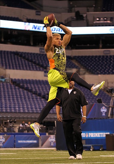 Tyrann Mathieu (CB, LSU): Next to Manti Te’o, Tyrann Mathieu was the prospect that was under the microscope the most at the NFL Combine. After getting kicked off the LSU football team, entering rehab and then getting arrested for another marijuana issue in the fall, Mathieu had questions to answer. During interviews, Mathieu said that he no longer wants to be referred to as the “Honey Badger” because that part of his life is behind him, and he seemed genuine about wanting to change. It seems as though the most recent arrest made him realize that he needed to clean up his act. Mathieu is obviously a smaller player, weighing in at 5’9″ 186 lbs, and will be a nickel corner in the NFL. Mathieu ran well, posting a 4.5 40-yard-dash, and as always been known for being quick rather than fast. He had a 34″ vertical, showing that he can still cover ground against taller receivers and had the best ball skills during the Combine drills. He didn’t drop a single ball that was thrown to him and did a great job high-pointing the ball. But another area of concern for Mathieu was his bench press, where he only posted 4 reps. Which raises the question, what had Mathieu been doing in the weight room for the past year? Despite this though, Mathieu still raised his stock a great deal and did pretty much everything he needed to do to ensure a team will take a chance on him.
