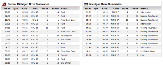 This was the most pleased I’ve been with a season opener in a while. The play of the young players, particularly the freshmen, was simply outstanding. The game was pure domination from start to finish on both sides of the ball. Not having to punt until the 4th quarter was awesome, though it would have been nice to cut down on some of those turnovers. These are the types of drive charts you want to see after a game: