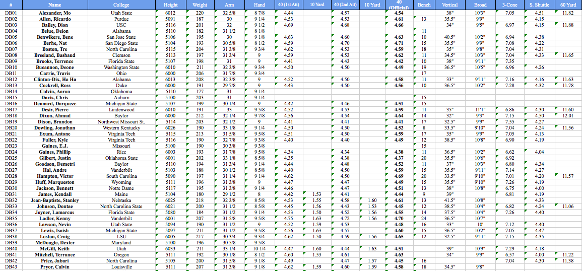 Keith McGill is someone I hadn’t heard of until the Combine, but someone who is 6’3″ 211 lbs and runs a 4.51 40 will catch your eye. Not to mention the fact that McGill added a 39″ vertical and a 10’9″ broad jump, meaning he can cover a massive amount of space. He didn’t bench press but I don’t really care what that is. A guy who is 6’3″ with 33 1/4″ arms and a 39″ vertical can put a blanket around almost any receiver in the league. He wasn’t great going through drills and will need some work trying to be smoother coming in and out of his breaks, but he’s a guy worth taking a shot on.