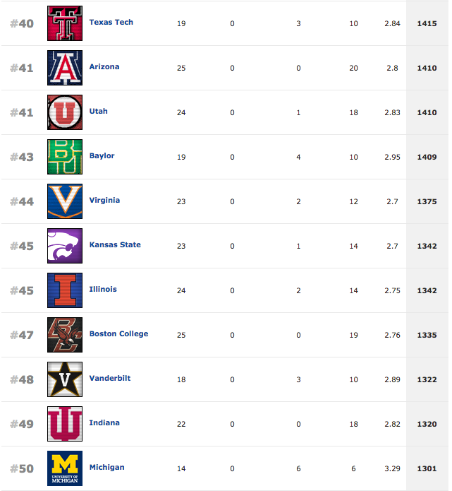 Recruiting rankings do not really matter to me, but I figured most people would like to see them. It’s impossible to be ranked highly when you only have 14 commits, the team in front of them with the closest amount of commits is at 18.