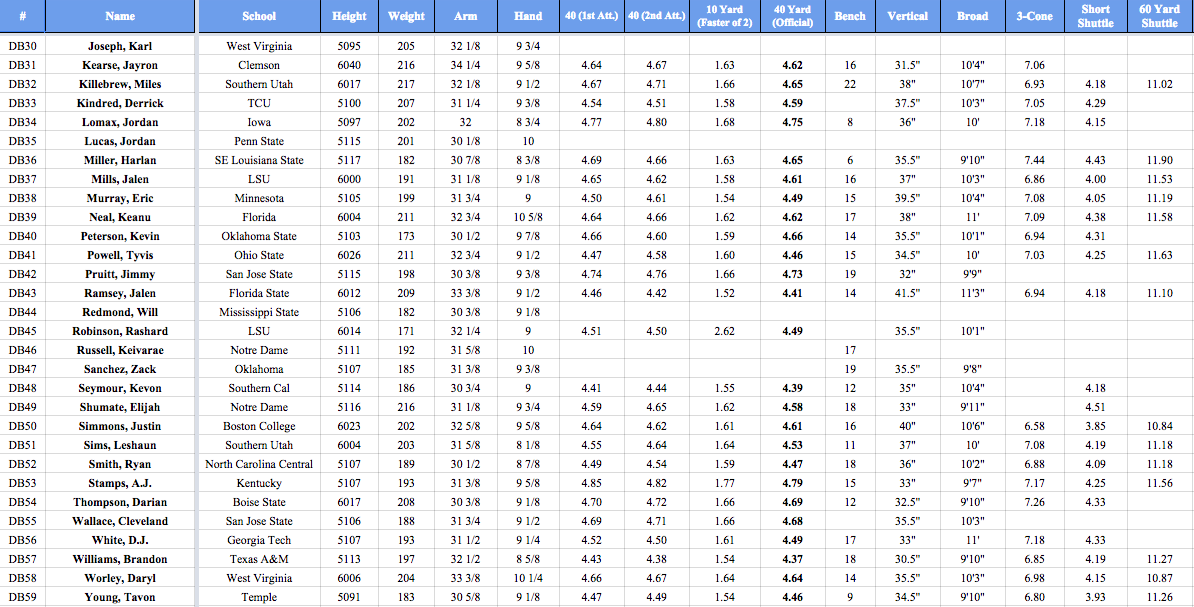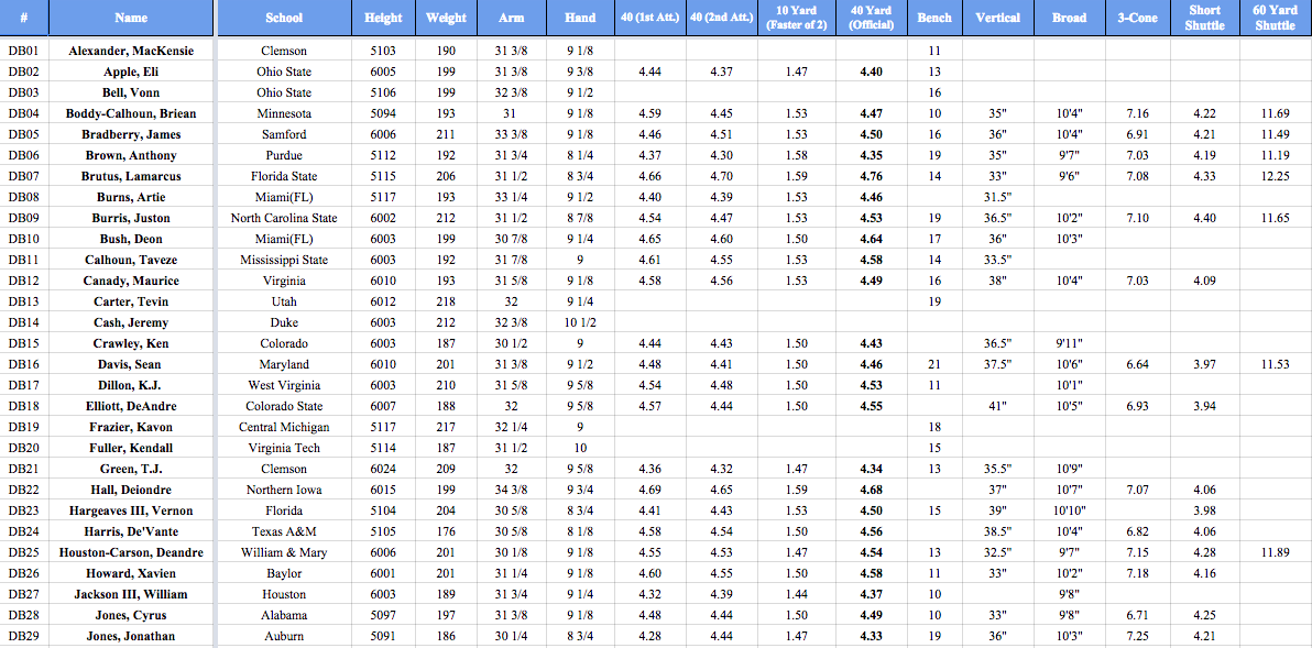 ANYWAYS, onto the players. This is an athletic group and probably one of the most athletic defensive back groups they’ve had in Indianapolis. In fact, on the broadcast they said that it was in the top 2 fastest Combine groups ever with a 4.50 40-yard dash.