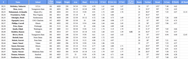 Another day with another tremendously deep position group in the draft. This class has an unbelievable crop of defensive lineman in it and I know there are teams that are just salivating after seeing some of the defensive lineman that tested. If the Browns do anything but take Myles Garrett at #1 after the day that he had, they should just move the franchise.