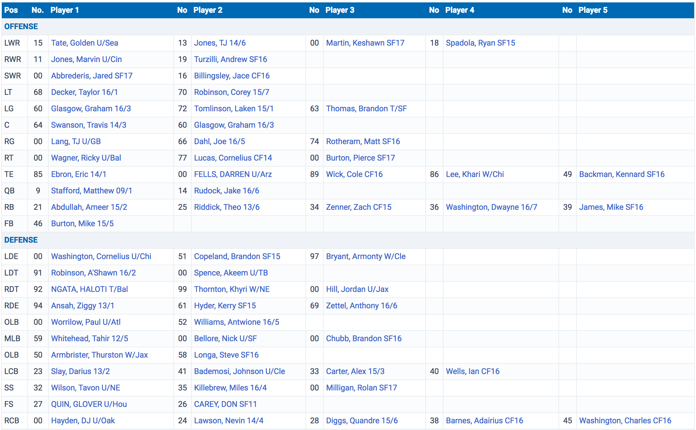 Now if you look at the depth chart, there are some needs that jump to mind immediately.