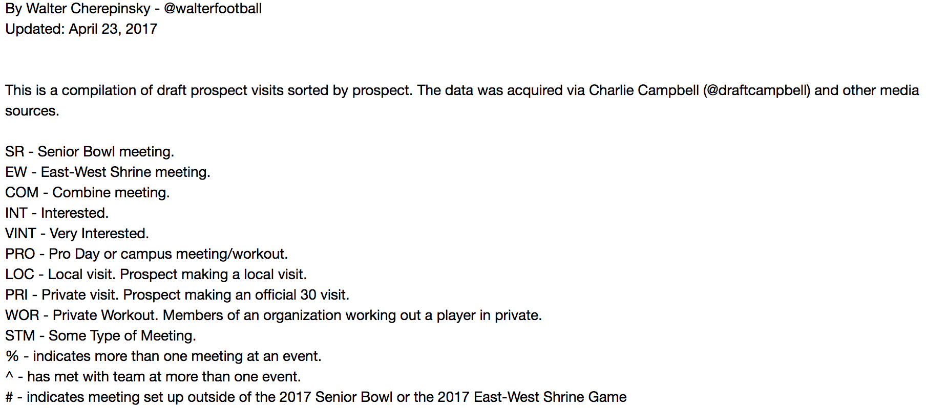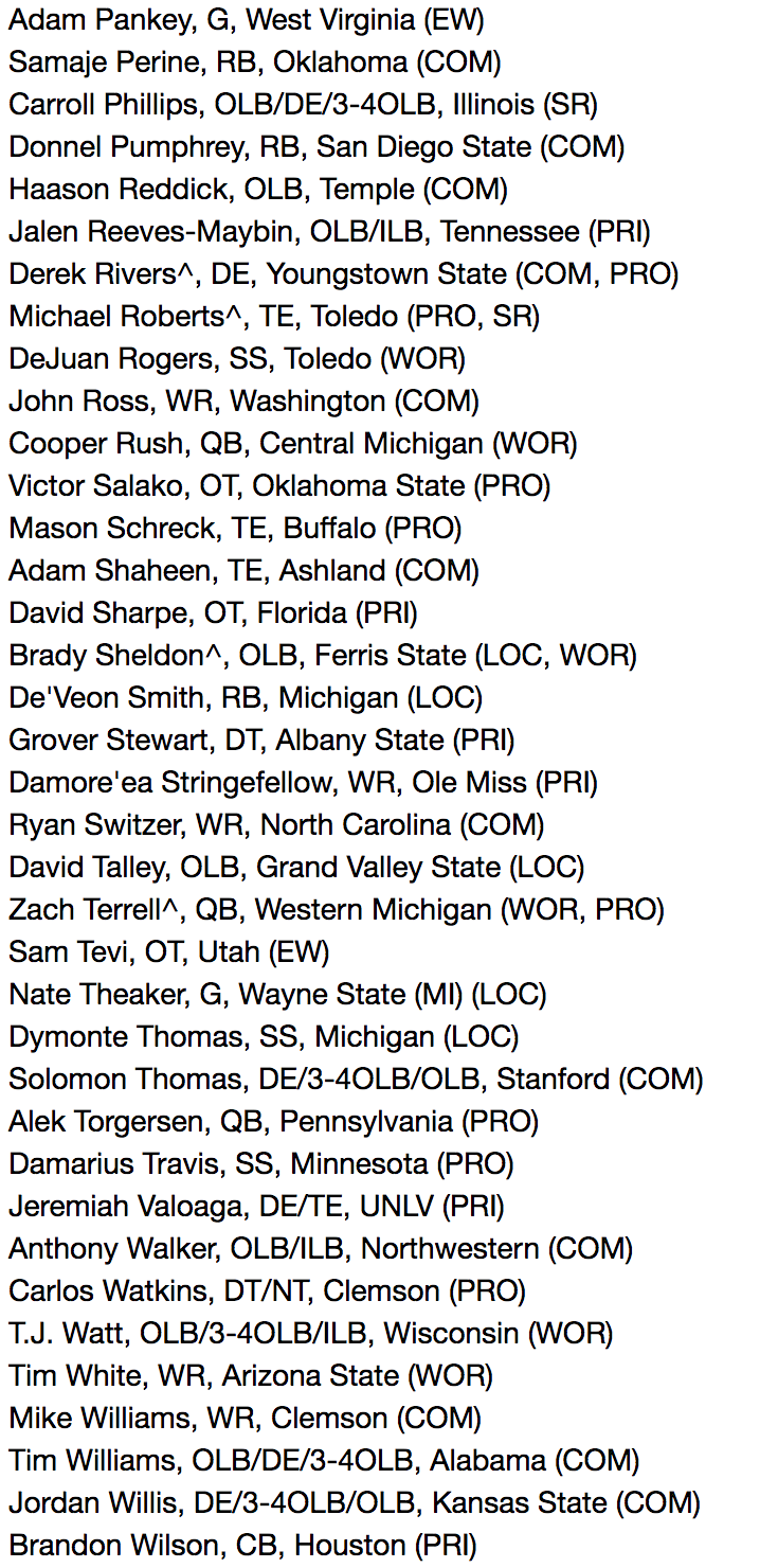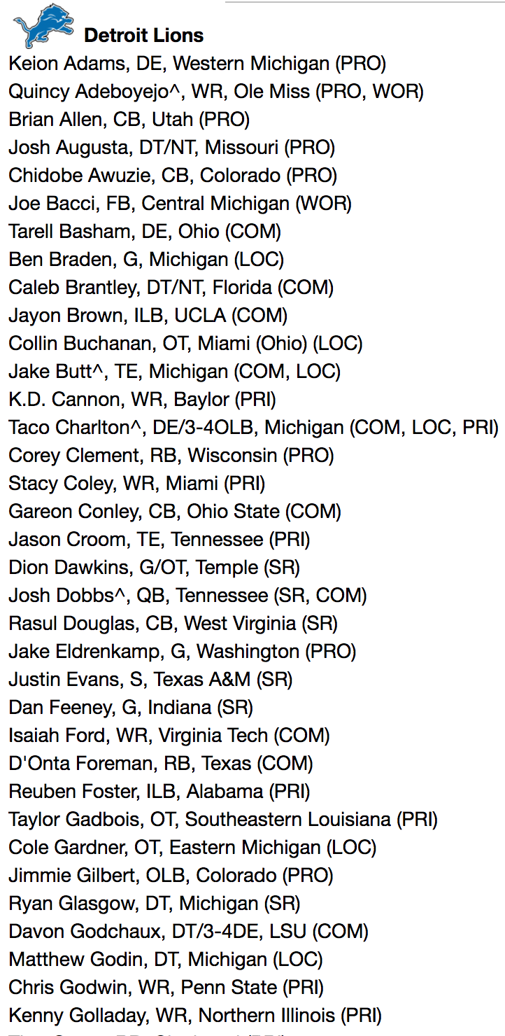 To give you and idea of who the Lions have met with during this pre-draft process, this tracker from Walter Football is very helpful.