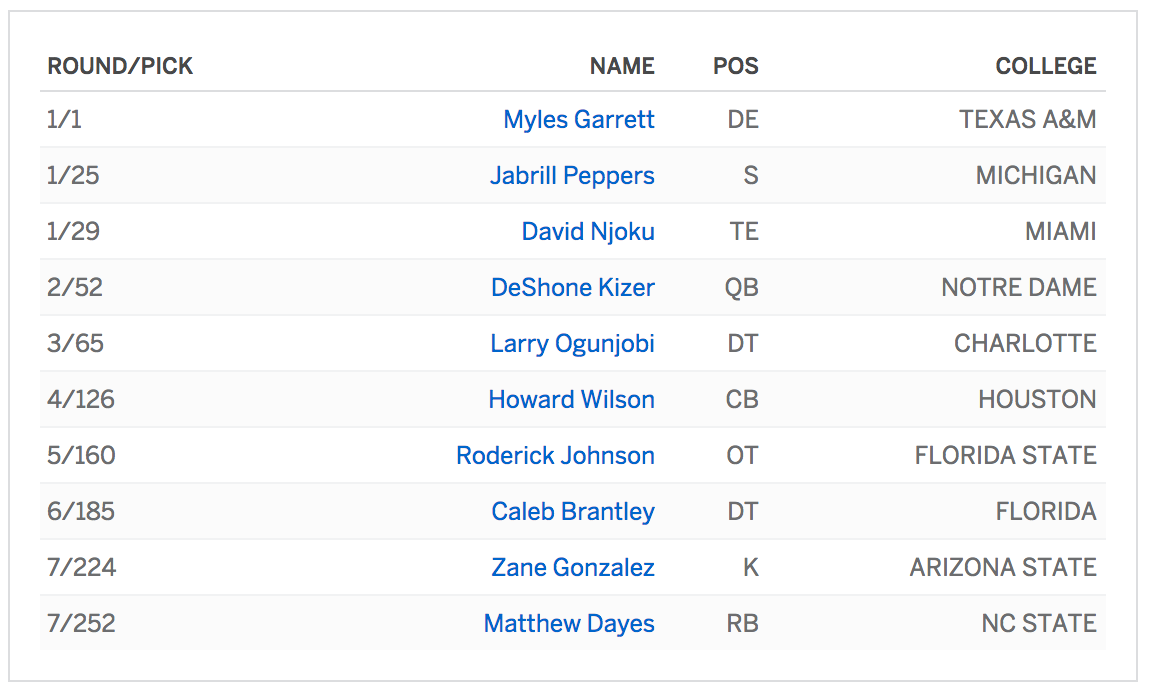 Absolutely love what the Browns did with their draft and I think they’re better off that they did not chase a quarterback early in the first round. DeShone Kizer fell into their lap in the second round and was worth taking a chance on at that point and drafting him would not impact their ability to draft a quarterback early next year if(when) they’re bad again. Myles Garrett was a no-brainer and he is poised to be an absolute stud. Taking Peppers gives them an intriguing playmaker immediately in the return game and potentially a starting safety. I like the David Njoku pick, because it gives them a playmaker at the tight end spot and will help their passing game. I know I was very anti-Njoku for the Lions, but that’s not because I hate Njoku, it’s because I do not think the Lions need two Eric Ebrons.