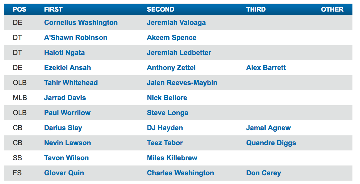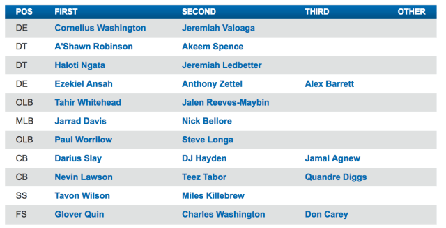 The secondary is going to be interesting. Two of the pieces are absolutely rock solid. Darius Slay and Glover Quin are fantastic and there is absolutely nothing to worry about with those two. Quin is one of the most underrated safeties in the NFL and Slay is easily Top 15 corner in the league. Someone between Nevin Lawson, DJ Hayden, and Quandre Diggs will start at the #2 corner spot and one will be in the slot. I was hoping that Teez Tabor would be further along at this point, but cornerback is a very tough position to adjust to in the NFL. It’s important to remember that Slay was not very good as a rookie and patience is an absolute MUST when developing corners. Even if you do not like the pick (I did not).