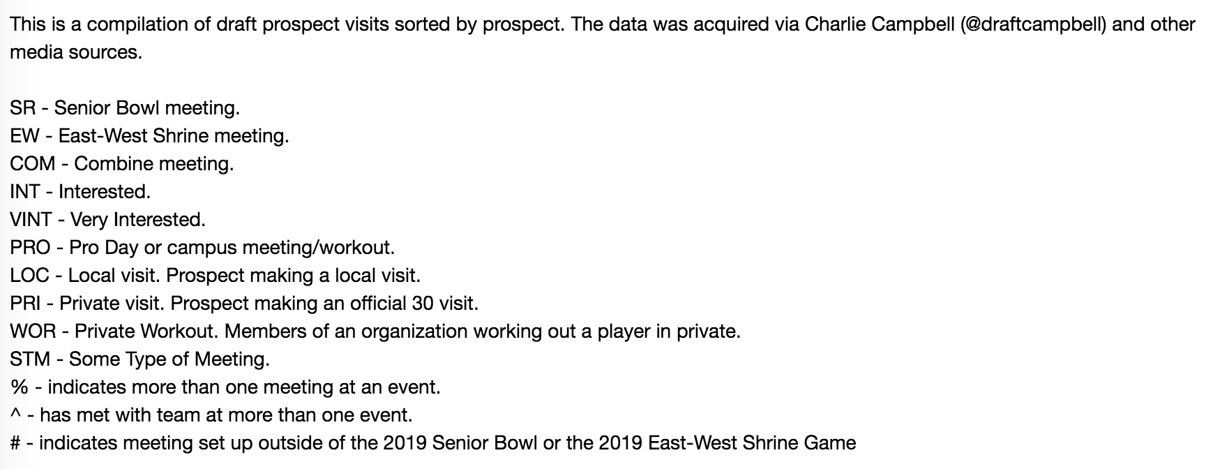 Last year I touched on the list of players the Lions had met with and how they have a track record of drafting players that they have met with. Now there is obviously always misinformation out there and team’s do a good job of keeping things quiet…but there is still a trend there. In his first draft, Bob Quinn 6/10 of the Lions picks were on this list. In his second draft 5/9 picks were on this list. And last year, 2/6 were on this list.