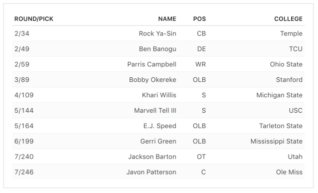 Then the Colts went back to defense with their next two picks and added Bobby Okereke and Khari Willis, two players that I’m a fan of and I think they will both be eventual starters on that defense…esepcially Okereke. I don’t know anything about E.J. Speed, but he has an all-time great football name.