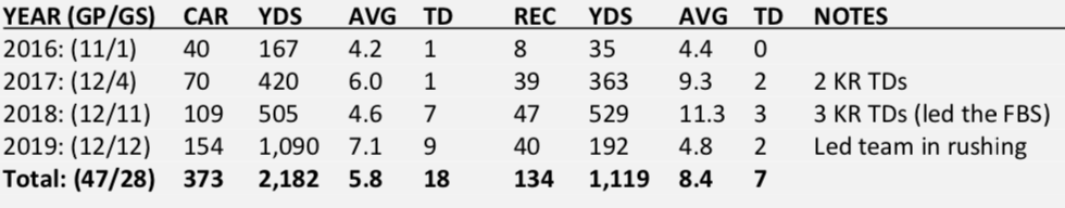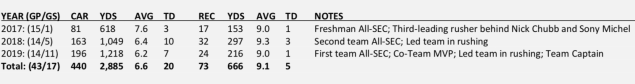 It’s pretty clear he’s agile and makes a lot of dudes miss once he has the ball in his hands. He’s going to be an asset in the passing game and has great vision. While it’s great he only had 440 carries in college (Jonathan Taylor had 926), I am slightly concerned that Swift was dinged up quite frequently in college. Nothing that ever really kept him out of play, but enough nagging issues to limit his effectiveness. He only had six carries in his final two college games because of a nagging shoulder injury.