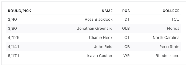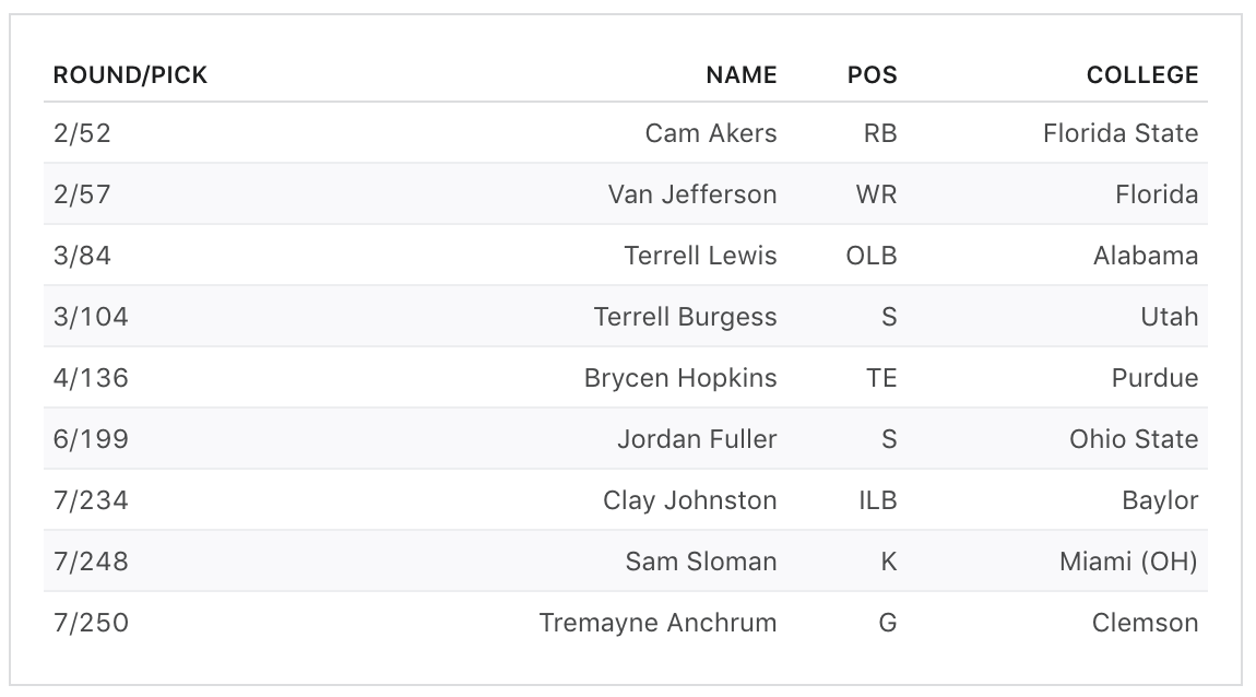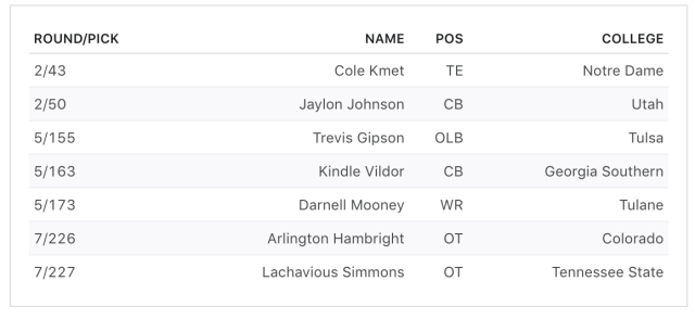I have no idea what the Falcons were doing with this first round pick and frankly, they’re really just on here because of it. A.J. Terrell got absolutely wrecked in the college football playoffs and while he had a good body of work prior to that, it is clear he cannot cover marquee receivers. Why would you take a corner 16th overall that cannot cover other teams best wide receivers?