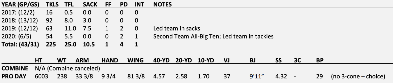 As a player his anticipation tends to be lacking, which he tries to make up for with his athleticism. His technique needs work, but he’s certainly more of the new-age corner with his size/speed combination. If he can work on his anticipation, I think he can develop into a starting cornerback alongside Jeff Okudah.