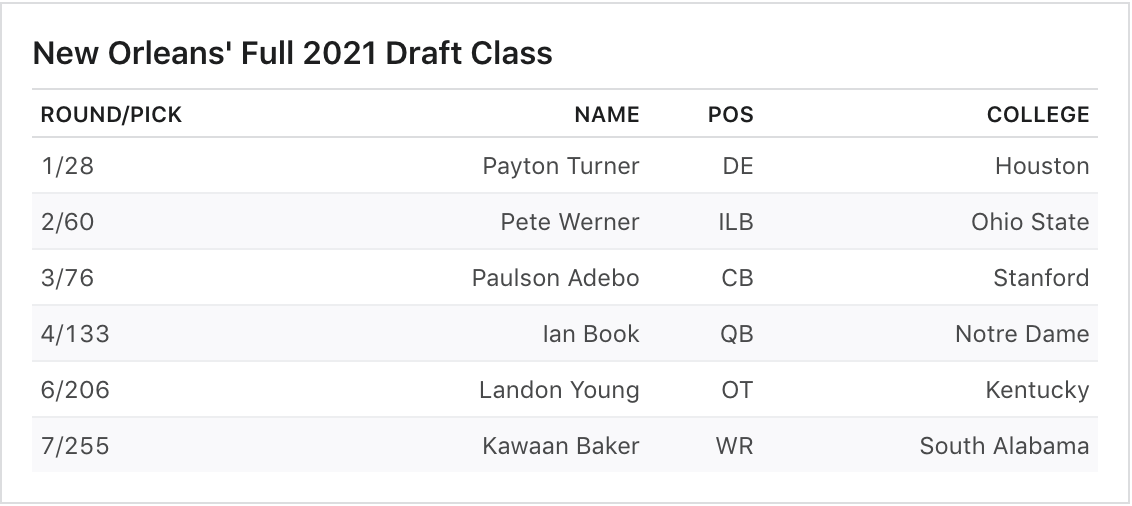 The Saints are another team that always seem to have a weird draft. Schefter tweeted out the night before the draft that Turner could surprise going in the first and sure enough, the Saints took him. I don’t mind any of their first three picks, but it just feels like outside of Adebo, they were all reaches. Drafting Ian Book in the 4th was a complete waste of a pick. I do not see how Book is an NFL starting quarterback and throwing him into the mix with Taysom Hill and Jameis Winston just seems pointless. I wish Sean Payton would come to his senses and name Jameis the starter, but he seems to be in love with Taysom for some reason. So if you have those two, why waste the fourth round pick on Ian Book instead of addressing a position of need when you’re strapped for cash? This was not the worst draft, but it most certainly was not an average one.