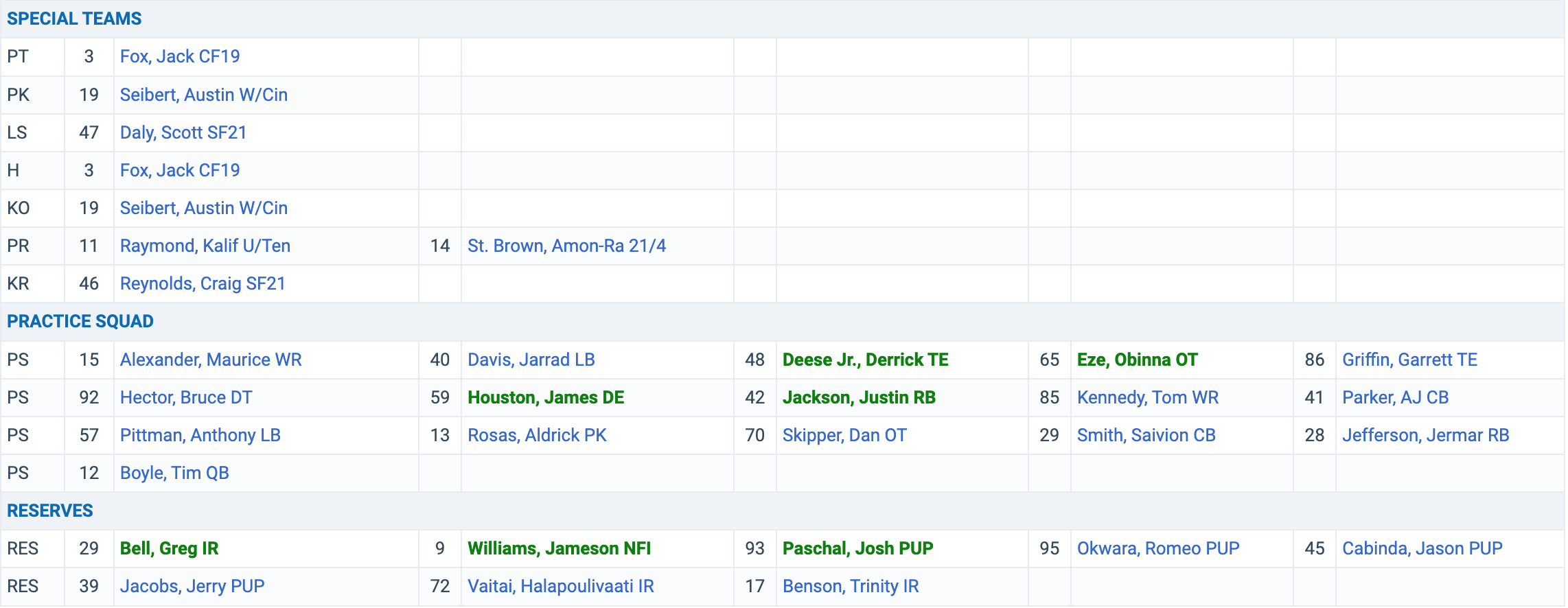 SPECIAL TEAMS/PRACTICE SQUAD