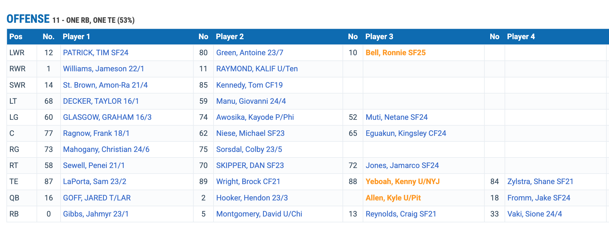 The last spot they could address, and probably should address, is tight end. It is one of the best tight end classes ever and it would be great to add another piece to that room to go with LaPorta and Wright. Zylstra is fine and YeBoah is going on his 5th year as a project…adding in someone that can play would be great for the TE3 spot. I’m not sure they will spend the capital early in the draft, but the tight ends picked in the first 3-4 rounds are going to be ballplayers.