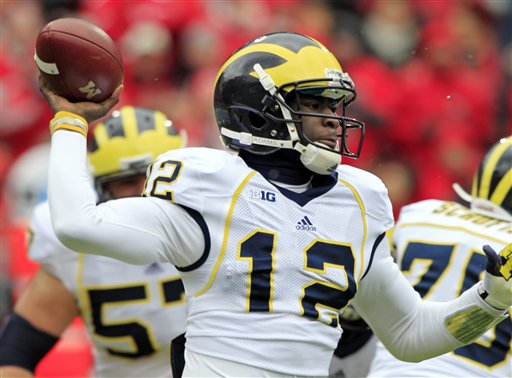 Michigan quarterback Devin Gardner passes against Ohio State in the first quarter of an NCAA college football game Saturday, Nov. 24, 2012, in Columbus, Ohio. (AP Photo/Jay LaPrete)