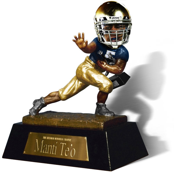 ** FILE ** The Heisman Trophy is shown in this 1978 photo file photo. The four Heisman finalists were announced Wednesday, Dec. 5, 2007. They are Hawaii quarterback Colt Brennan, Missouri quarterback Chase Daniel, Arkansas running back Darren McFadden and Florida quarterback Tim Tebow. (AP Photo) ORG XMIT: NY176